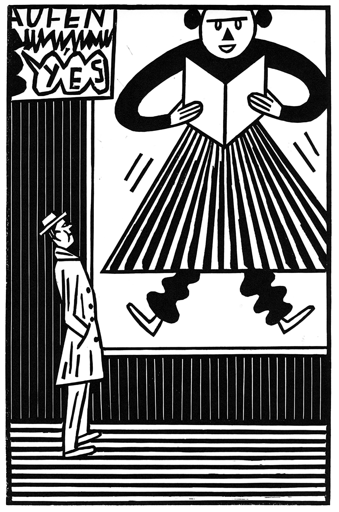 Des animaux en veux-tu en voilà, un Paris rempli de passants et des lecteurs par dizaine qui – comme nous avec leurs albums – dévorent dans la joie les pages de livres tournées. Joëlle Jolivet, tout comme Katrin Stangl s’illustrent par la variété des thématiques qu’elles explorent. Une chose est sûre. Sous leurs gouges, aussi affûtées que leur sens de l’observation et du détail, la vie grouille. Des vues d’ici, des vues de là, en noir et blanc ou en couleur, dans lesquelles navigue un même respect du sujet autant que du matériau : Joëlle et Katrin le creusent avec rigueur pour aller à l’essentiel. Pas le temps pour le flou. Place à la netteté. Leur technique favorite – mais pas exclusive ! – est un procédé de reproduction qu’elles utilisent comme un vrai moyen d’expression. Elles en aiment le rendu simple, net et précis.